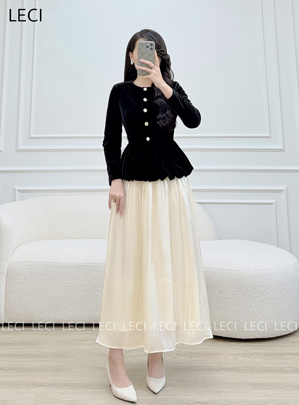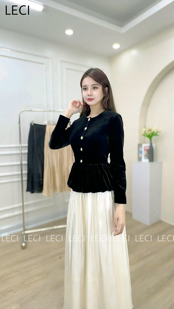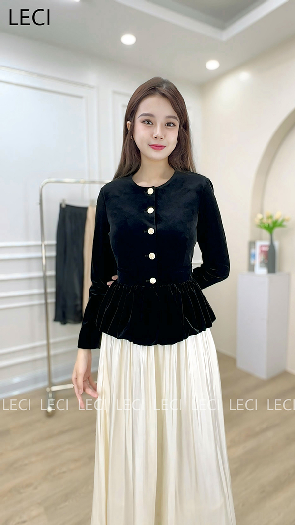 Áo Ký Giả Nhung Peplum Thiết Kế LECI - A551