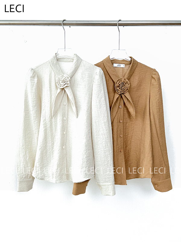 Áo sơ mi cổ nơ thiết kế LECI - A542