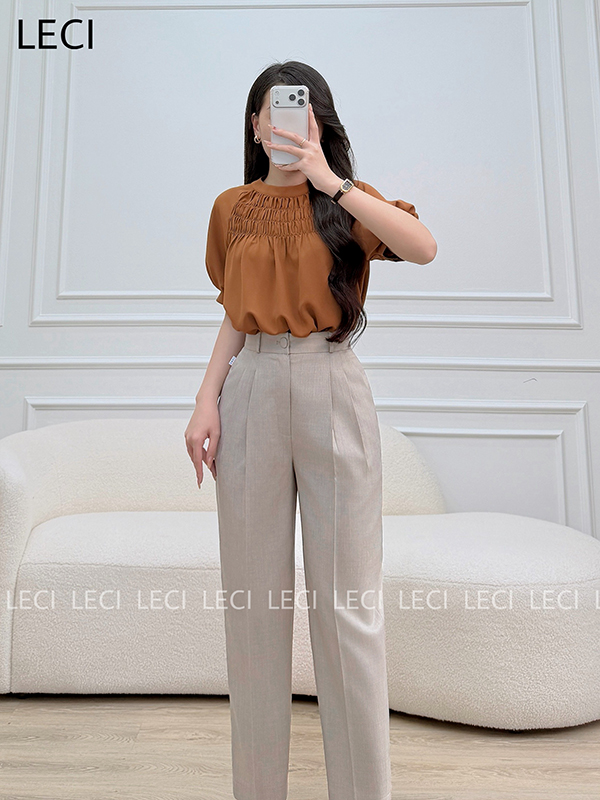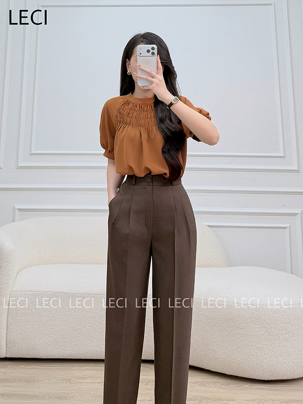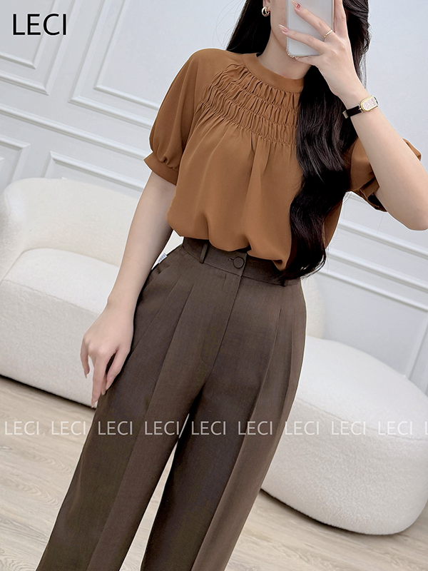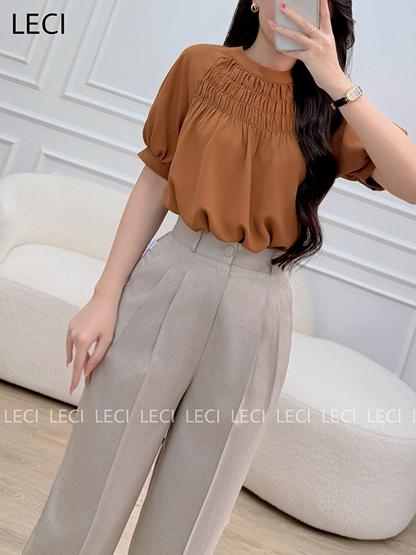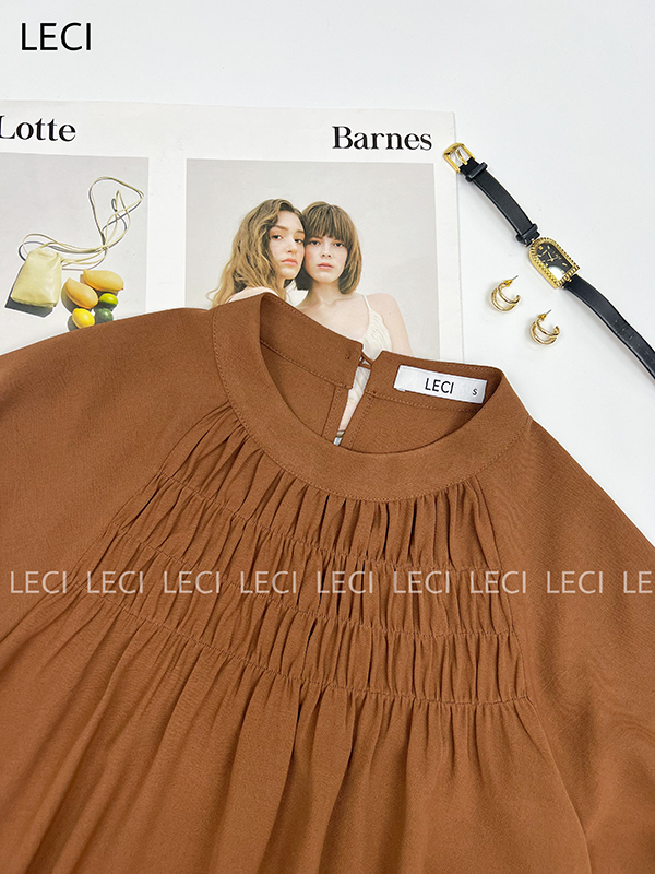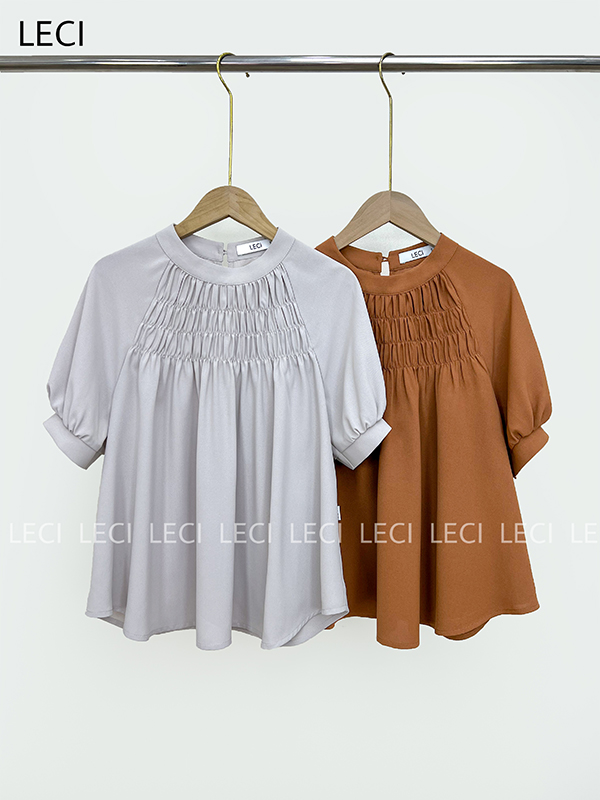 Áo sơ mi dáng suông, chạy nhún trước ngực A623