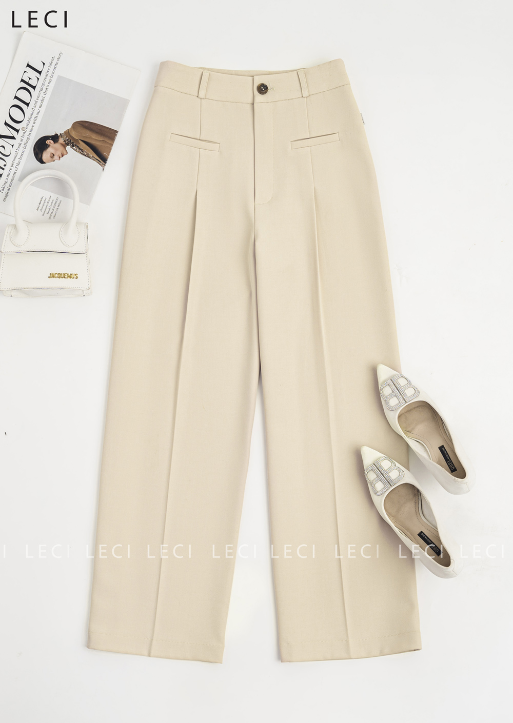 Quần ống suông cạp cao thiết kế LECI - QV411