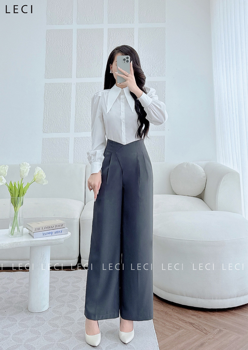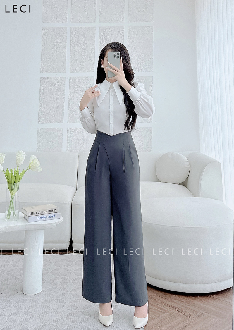 Quần suông 2 ly cạp cao thiết kế LECI - Q166