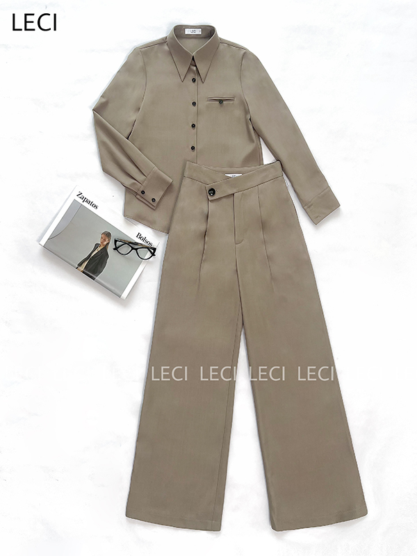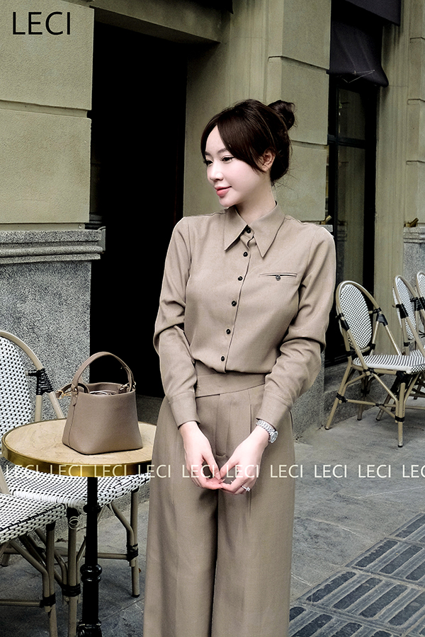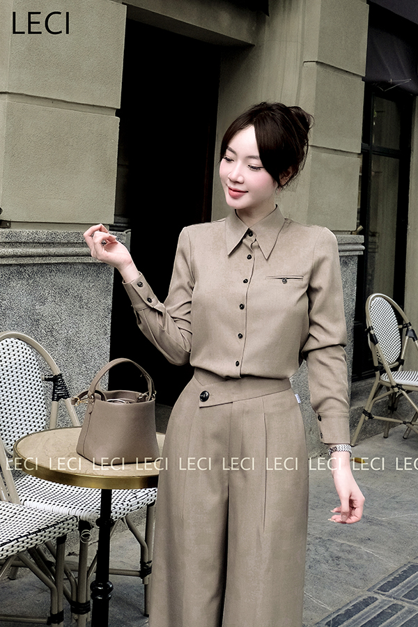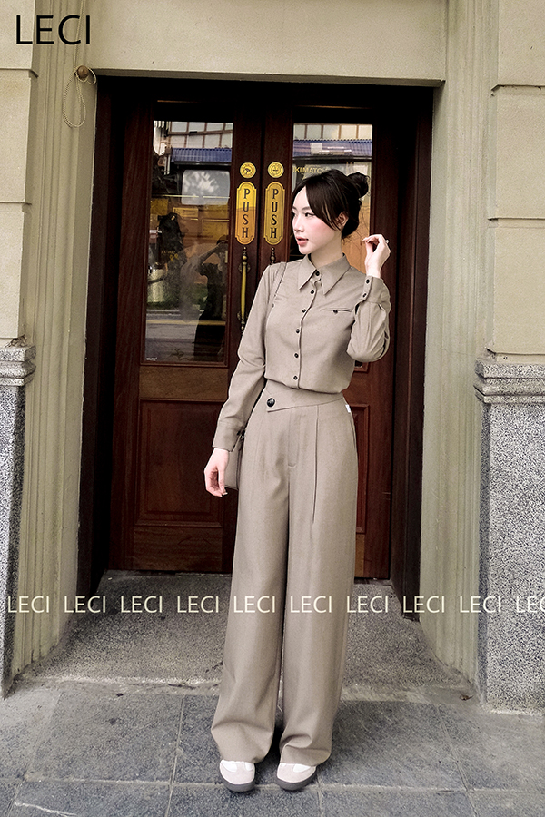Set bộ thiết kế S341(Áo sơ mi cổ đức, Quần suông cạp chéo)