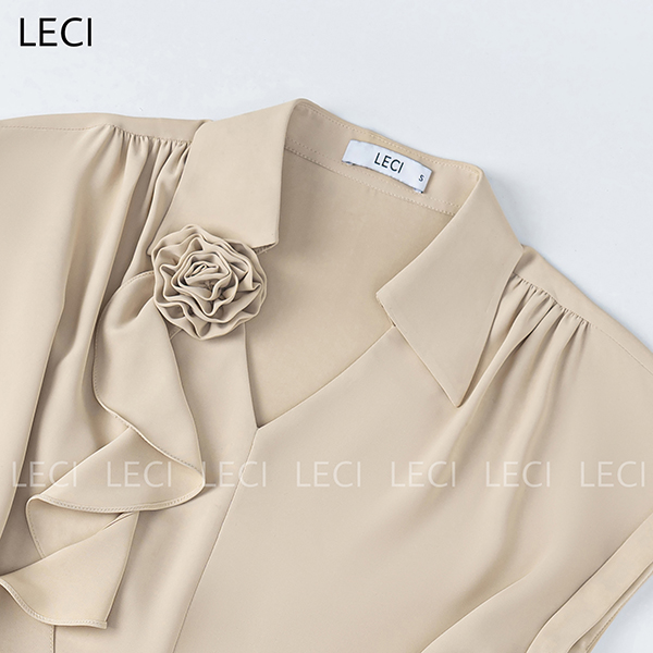 Áo sơ mi cổ đức xẻ V, hoa bèo trang trí A430