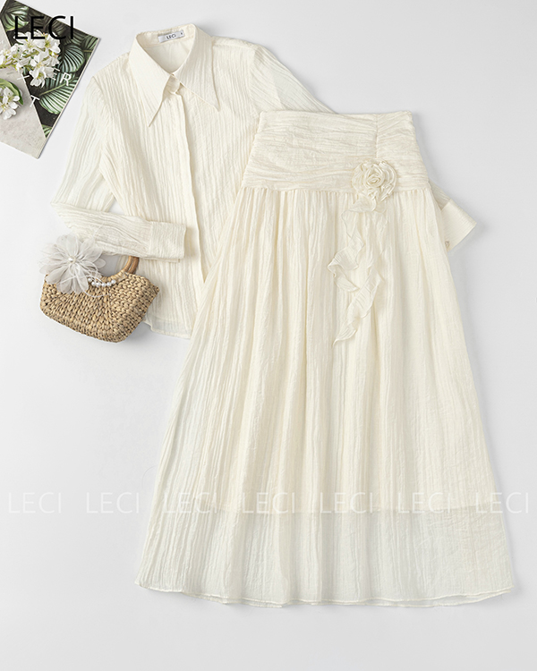 Set bộ thiết kế S466(Sơ mi cổ đức, Chân váy xoè)