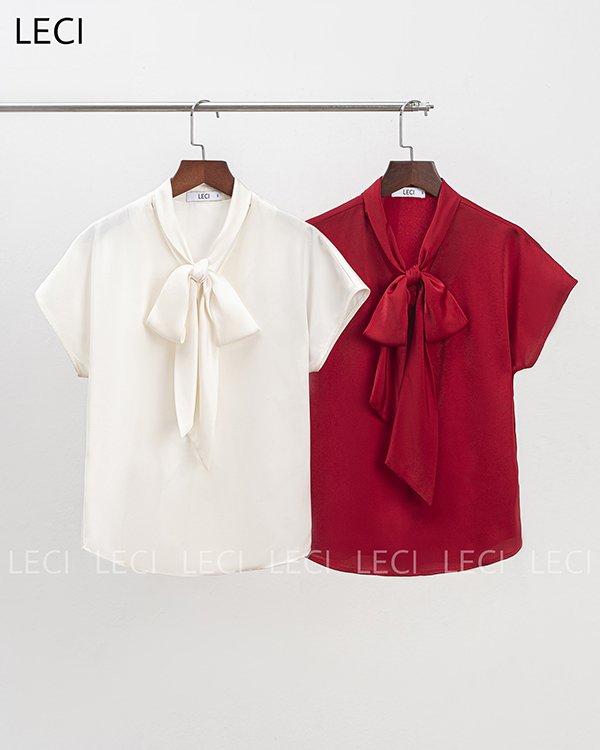 Áo sơ mi lụa cổ bộc nơ, tay liền A450