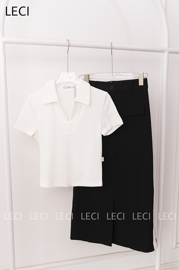 Set bộ thiết kế S492(Áo cotton tăm lạnh, Chân váy dáng suông)