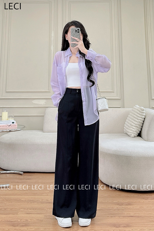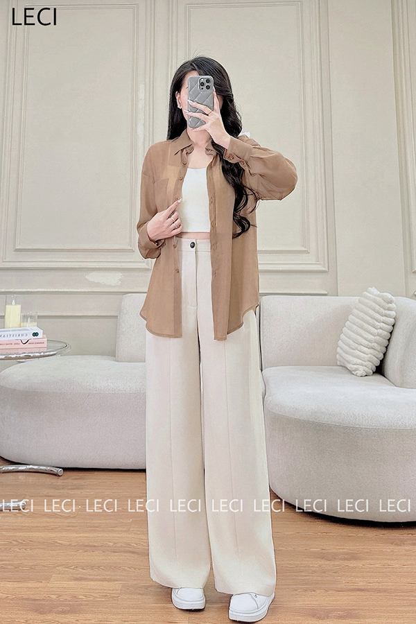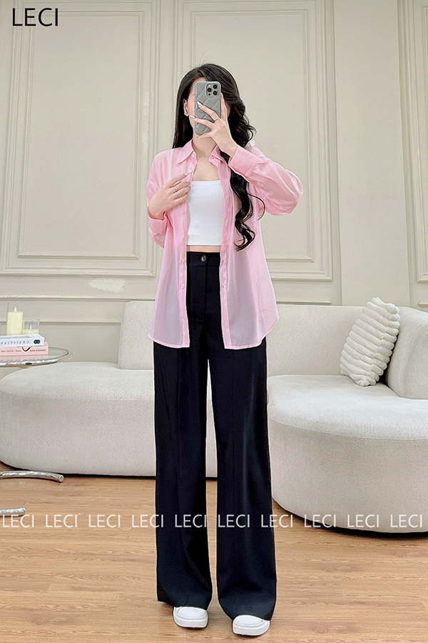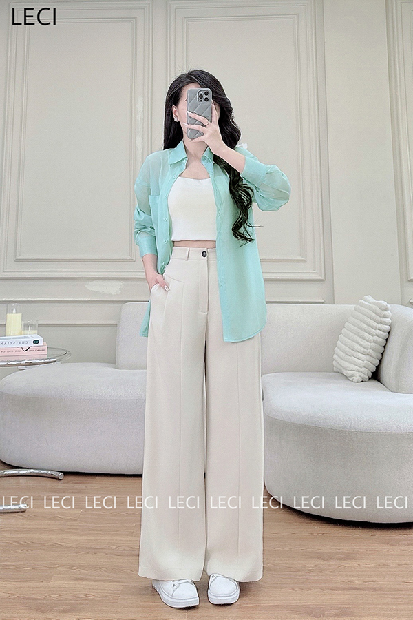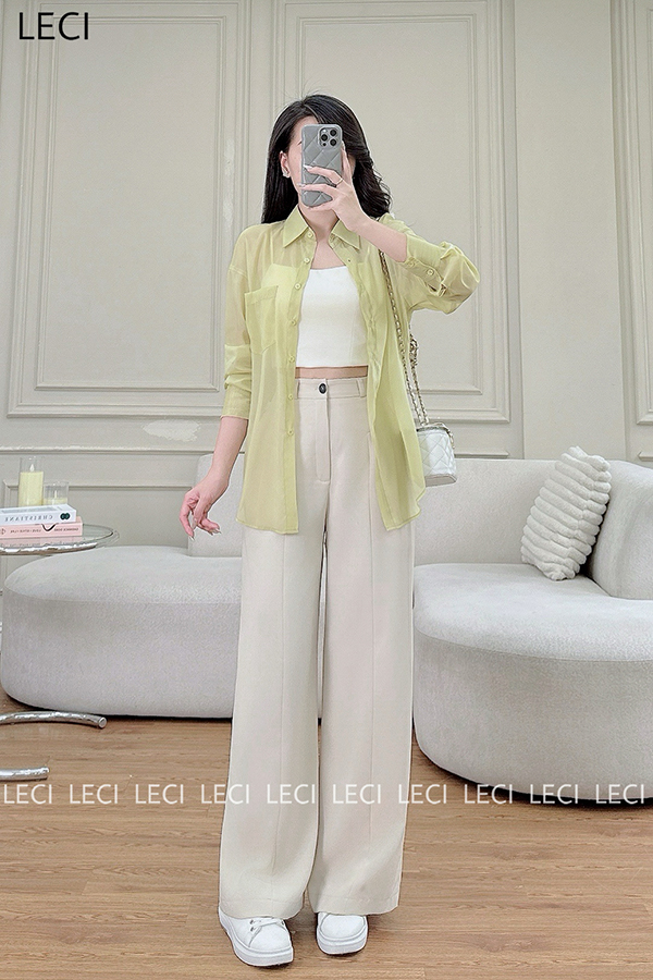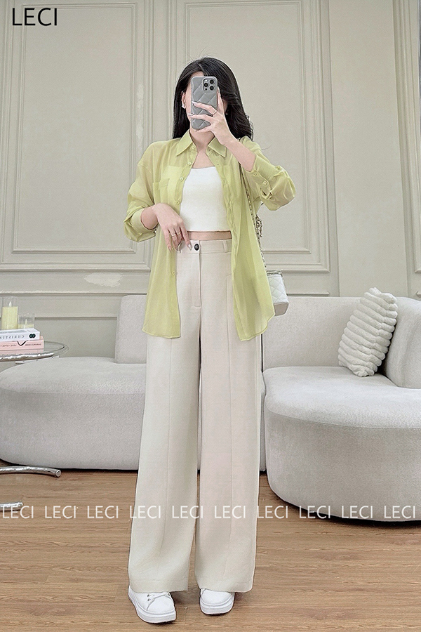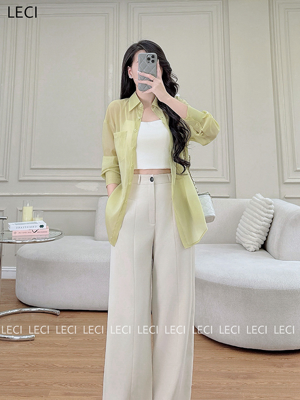 Set bộ thiết kế S530(Áo sơ mi tơ óng, Quần suông cạp rời)