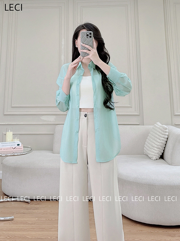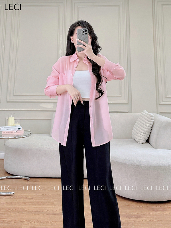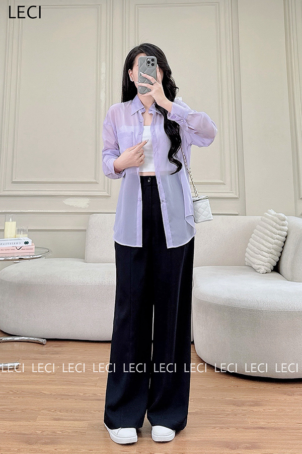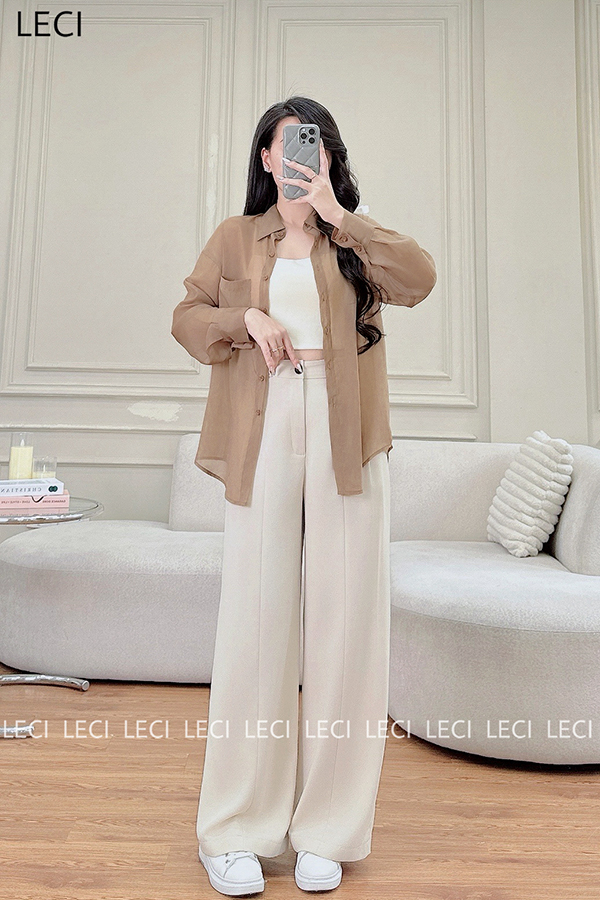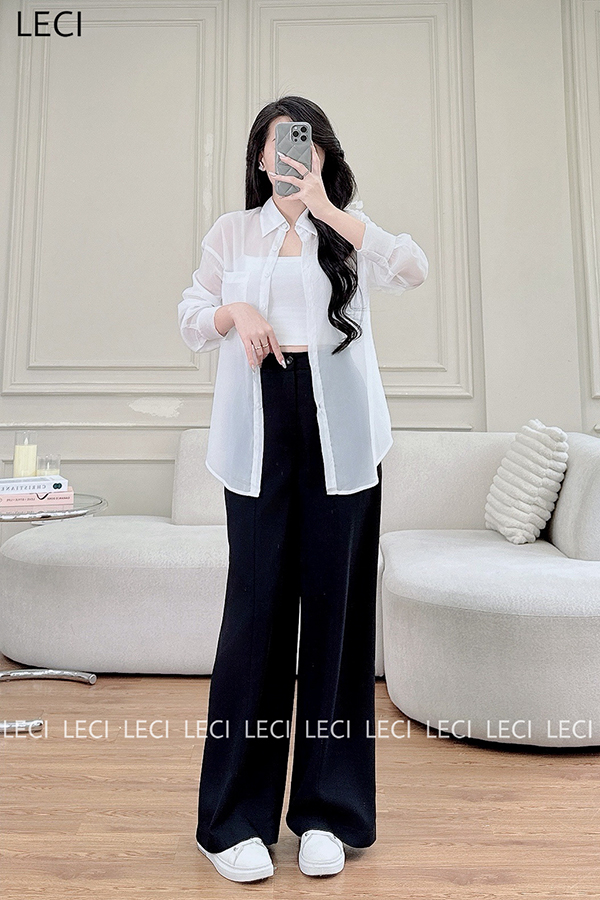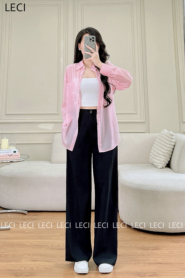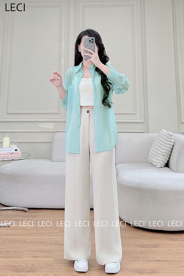 Set bộ thiết kế S530(Áo sơ mi tơ óng, Quần suông cạp rời)