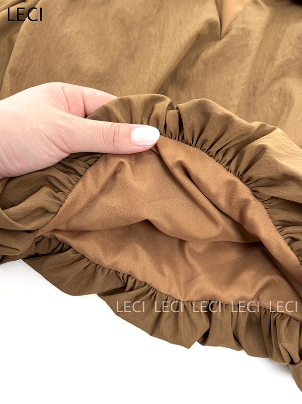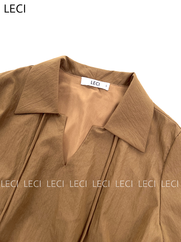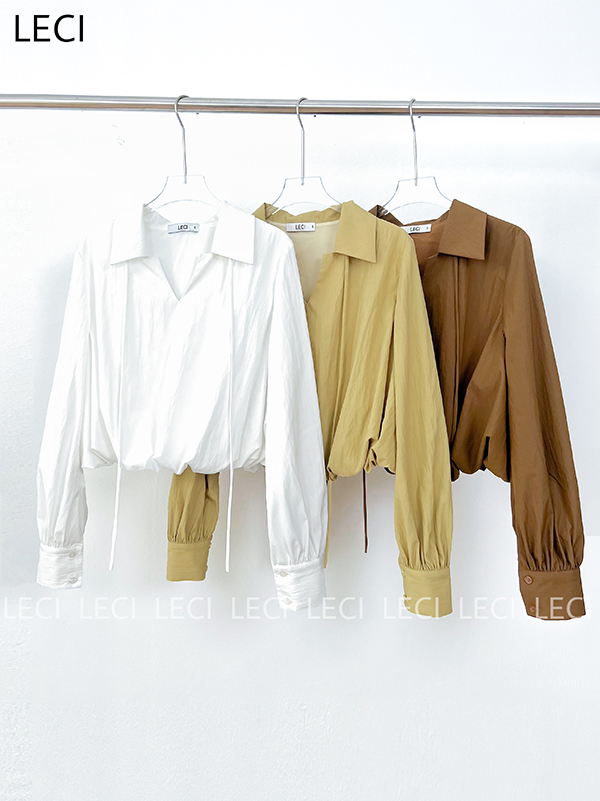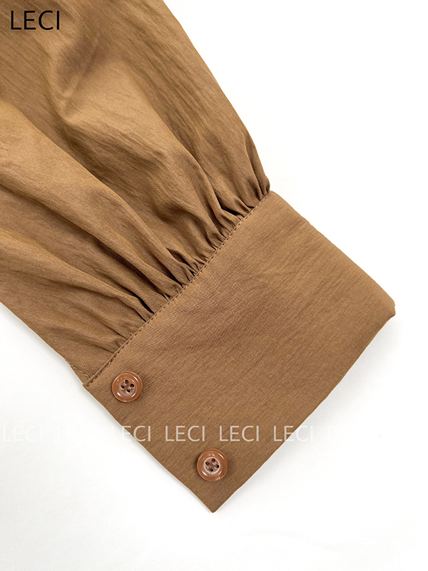 - Tay dài, xếp nhún ở cửa tay, măng séc 7cm, cài 2 cúc sơ mi