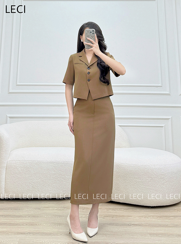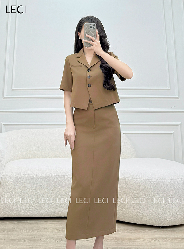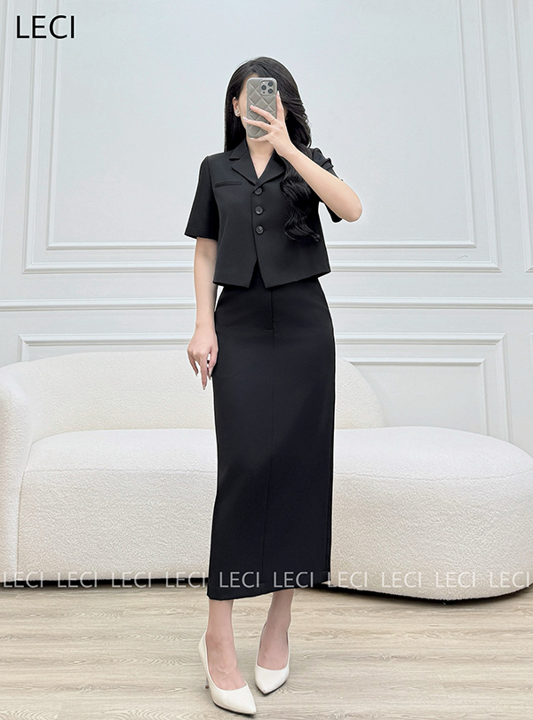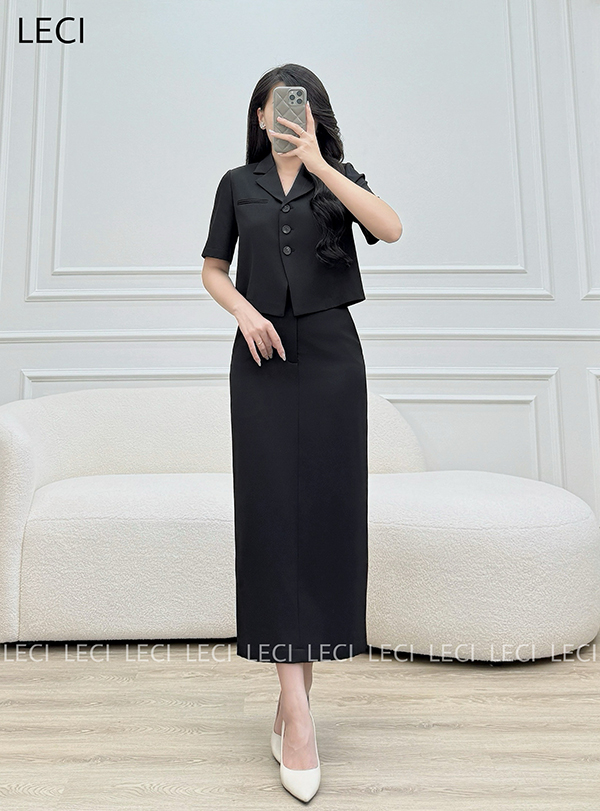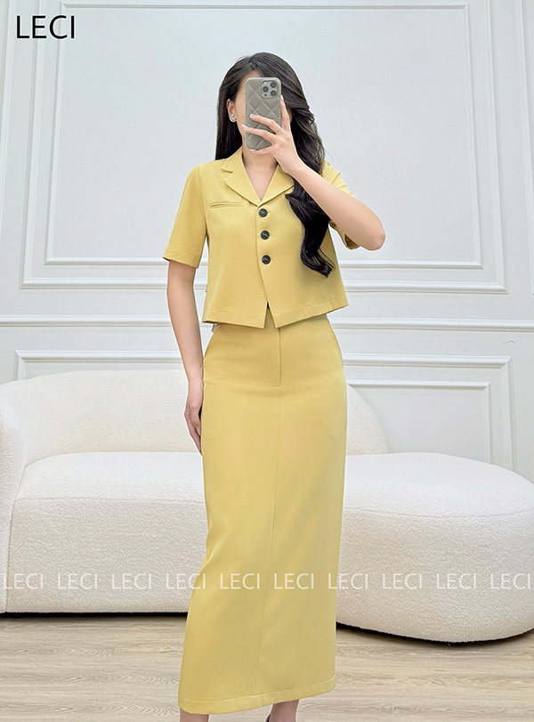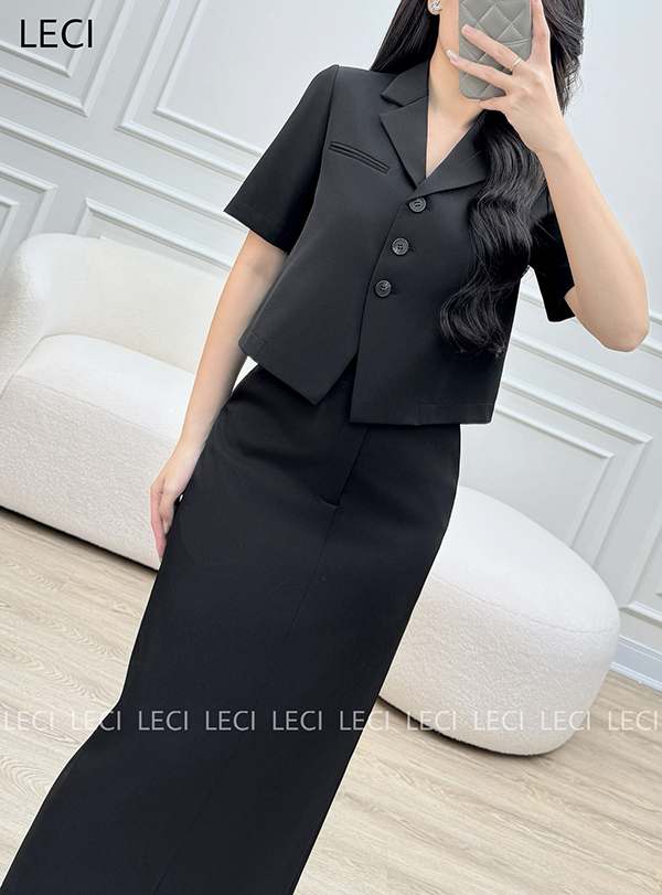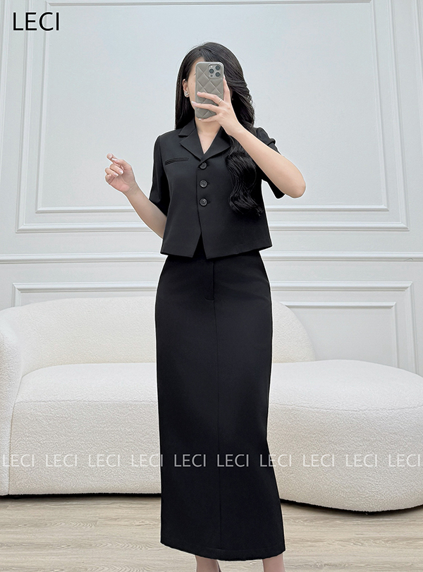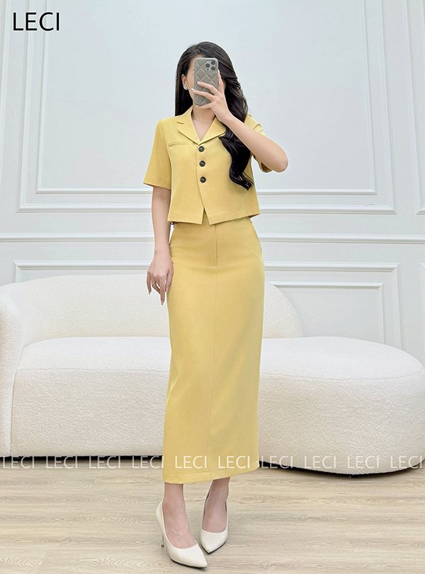 Set bộ thiết kế S560(Áo croptop cổ 2 ve, Chân váy ôm suông)