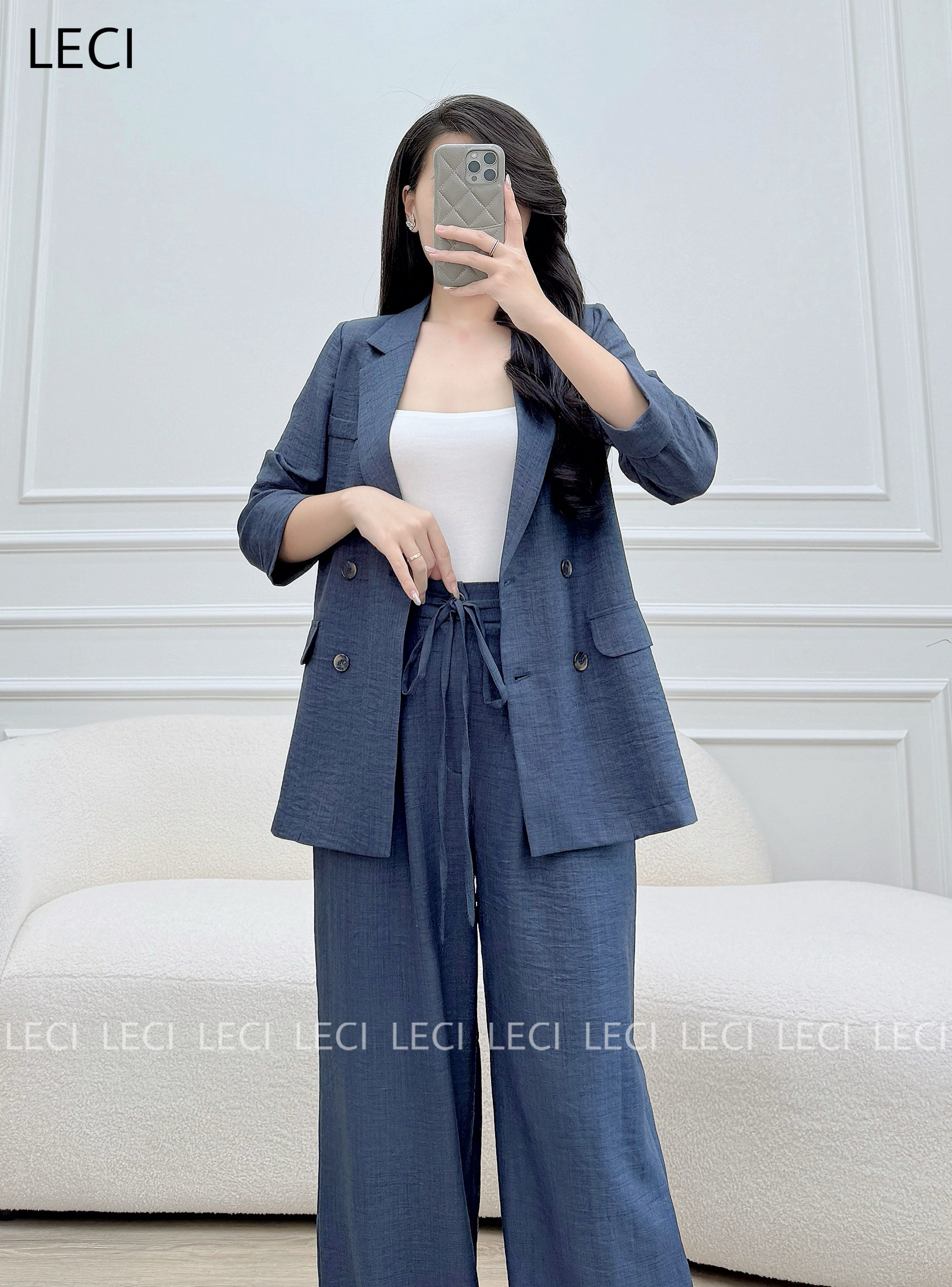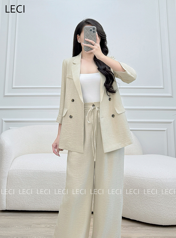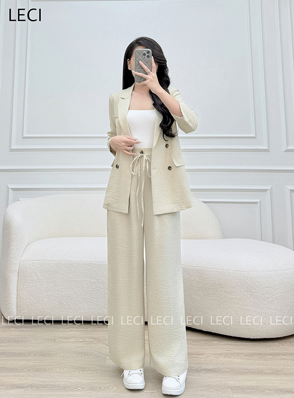 Set vest thiết kế V564(Áo vest suông, Quần suông cạp rời)